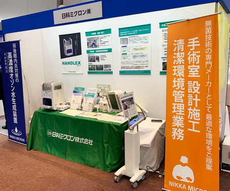 弊社展示ブースでは、眼科手術室の設計・施工や環境モニタリング・清掃消毒のご案内や、オゾン水手洗い装置 ハンドレックス、エアーバリアミニなどの実機展示を行い、大盛況のうちに終了しました。